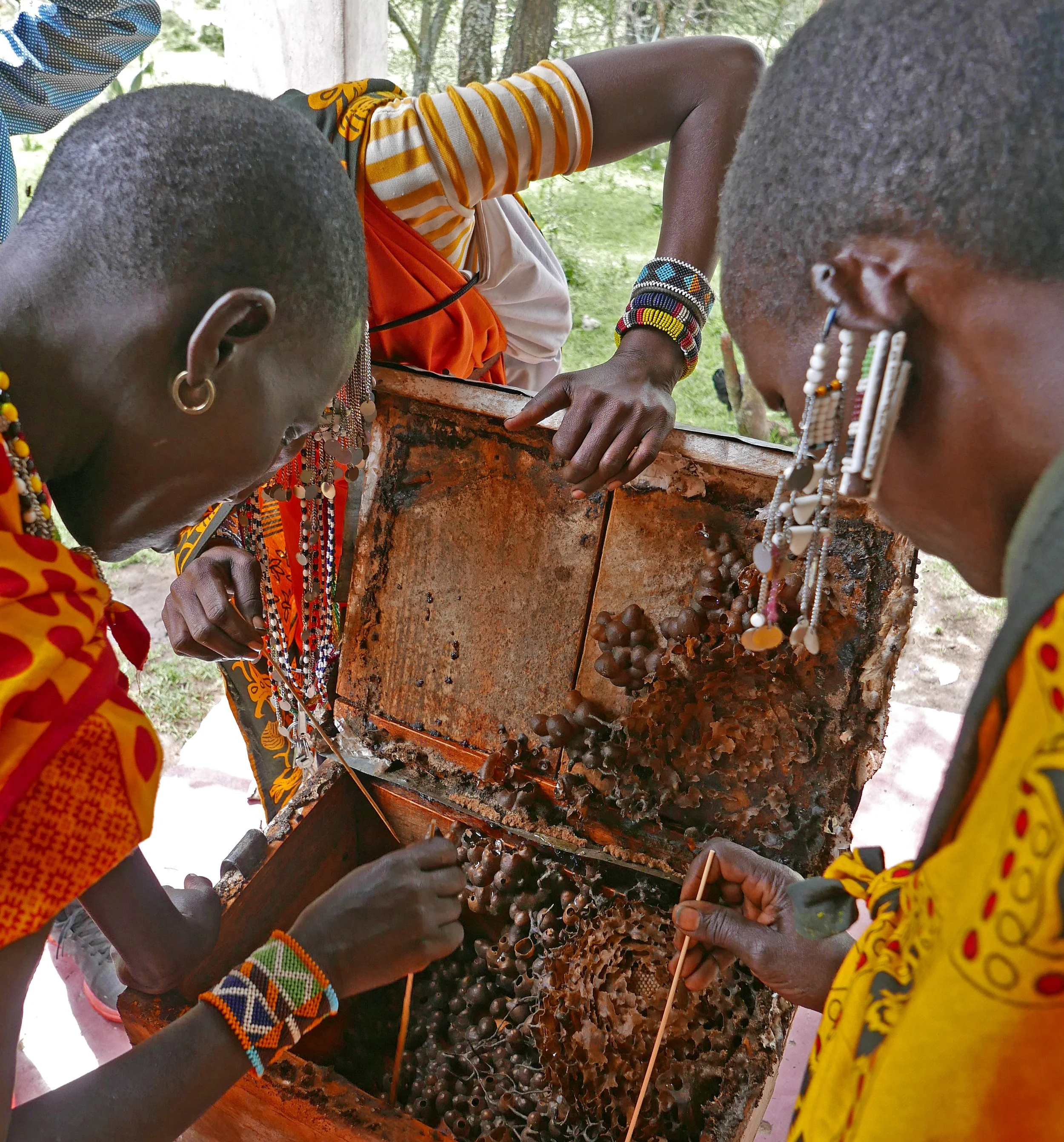 Maasai women harvesting from a stingless bee colony